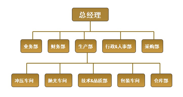 中山市帝冠五金制造有限公司組織架構的組成形式分為以下幾個部門: